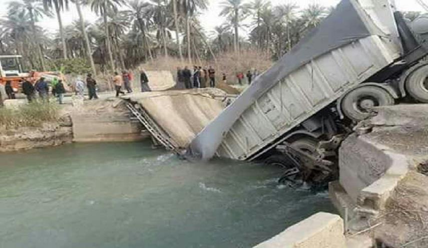 بالصور .. انهيار جسر على نهر في العراق بسبب شاحنة كبيرة