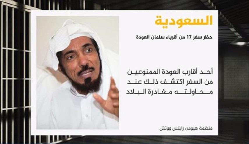 السعودية - الكوثر: أصدرت منظمة "هيومن رايتس ووتش"، امس الأحد، بيانًا قالت فيه، إنّ السلطات السعودية تفرض حظرًا على سفر 17 من أقرباء الداعية (الوهابي) سلمان العودة، المحتجز منذ نحو أربعة أشهر في السعودية.