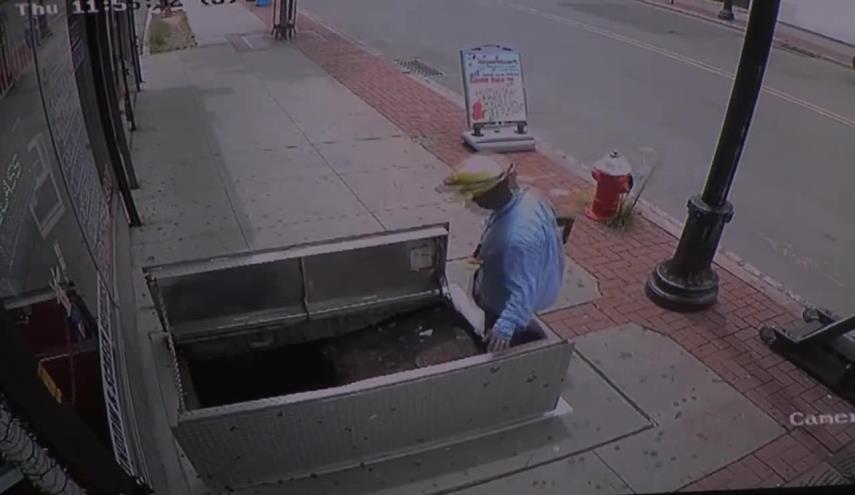 أثناء انشغال امرأة بهاتفها المحمول لم تری أمامها أن حفرة مخصصة لكابلات الهواتف مفتوحة، فسقطت فيها سقطة مروعة، و ذلك في ولاية نيوجيرسي الأمريكية.