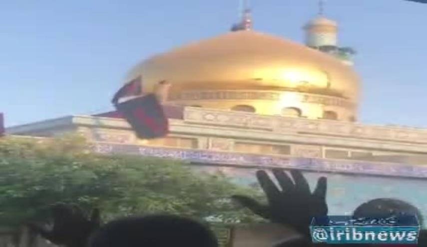اسلاميات_الكوثر: فيديو لمراسيم تبديل راية السيدة زينب الحوراء "صلوات الله عليها " بحلول شهر الاحزان محرم الحرام، وقد بدلت راية العقيلة عليها السلام الحمراء بالسوداء.