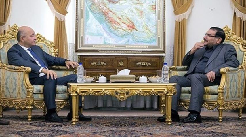 إيران - الكوثر: أكد الرئيس العراقي برهم صالح خلال لقائه اليوم السبت بطهران أمين المجلس الاعلى للامن القومي "علي شمخاني" ان بلاده لن تسمح لأي جهة باستخدام الاراضي العراقية للاضرار بمصالح ايران.