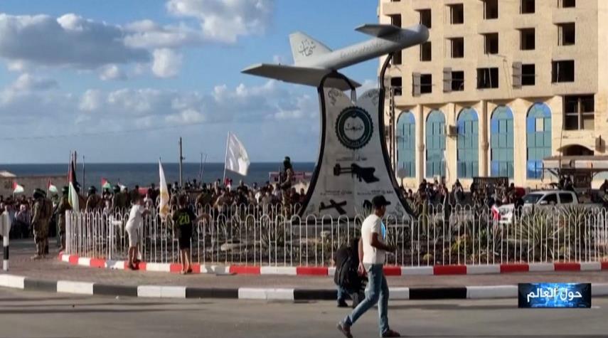 حول العالم_خاص الكوثر: دشنت كتائب الشهيد عز الدين القسام الجناح العسكري لحركة المقاومة الإسلامية "حماس"، ميدان طائرة "شهاب" غرب مدينة غزة.