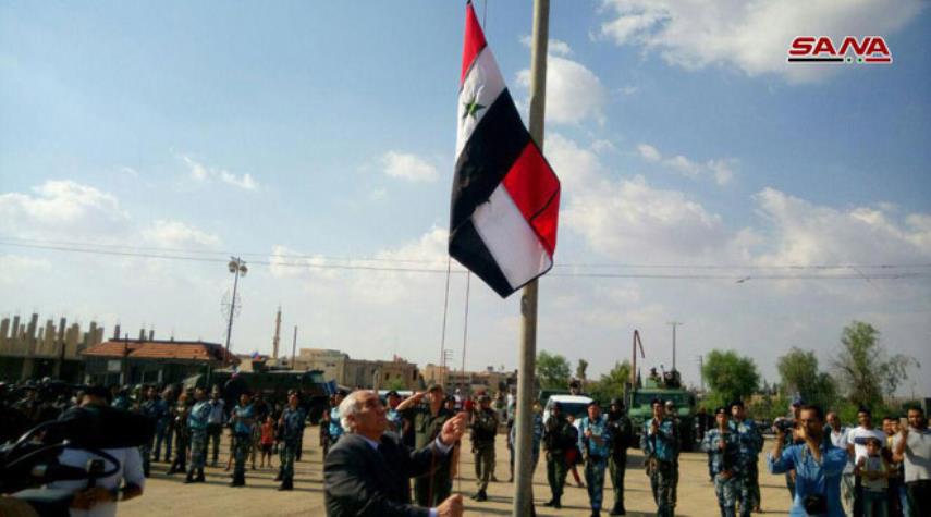 سوريا - الكوثر: بمشاركة الأهالي تم اليوم رفع علم الجمهورية العربية السورية في الساحة الرئيسية بمدينة بصرى الشام بريف درعا الشرقي إيذانا بإعلانها آمنة ومستقرة وخالية من الإرهاب.