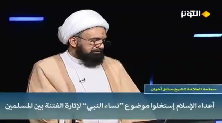 الوجه الآخر _ الكوثر: قال الشيخ صادق أخوان في حواره مع برنامج الوجه الآخر إن أعداء الدين استغلوا موضوع نساء النبي(ص) لإثارة الفتنة بين المسلمين.