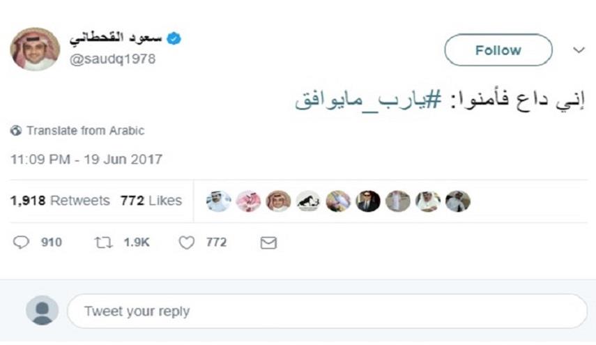 على الرغم من شغله منصب وزير وعمله مستشارا في الديوان الملكي السعودي، قال مغردون إن حساب المشرف العام على مركز الدراسات والشؤون الإعلامية سعود القحطاني على تويتر مليء بـ"الإسفاف والبذاءات التي لا يمارسها المسؤولون الحكوميون".