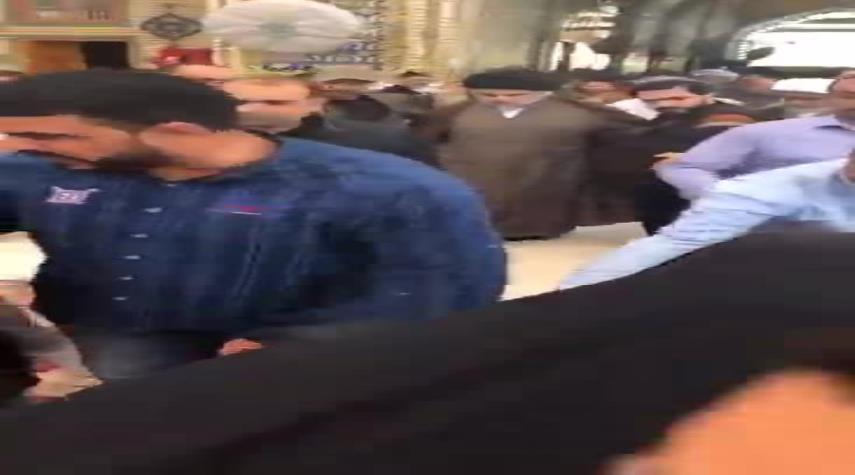بالفيديو.. حريق في صحن فاطمة الزهراء المجاور لمرقد الامام علي وسط النجف