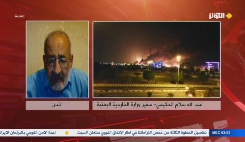 ضيفنا من لندن الاستاذ الاستاذ عبدالله سلام الحكيمي سفير وزارة الخارجية اليمنية وفي حلقتنا لبرنامج قضية ساخنة اشاروا الى خطر الاسرة المالكة على وجود شعوب الجزيرة العربية الامر الذي جعل هذه الشعوب وبالاخص من يعيش في نجد والحجاز والمنطقة الشرقية يتقاربوا مع الجيش اليمني واللجان الشعبية اي القوة السياسية وان تنسج علاقات اخوية، نظالية وجهادية مشتركة معهم.