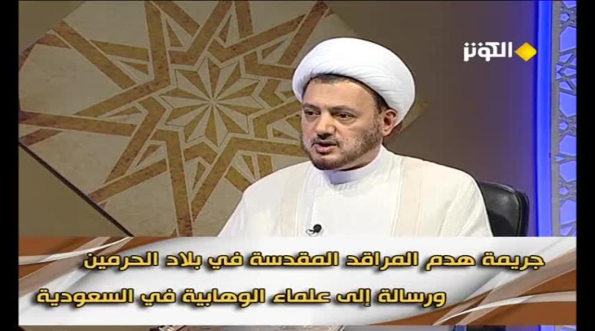 فقه الاسلام - الكوثر : وصف الشيخ اسد محمد قصير هدم المراقد المقدسة في بلاد الحرمين بالجريمة موجها برسالة إلى السلطات السعودية بأن يتوبوا من هذه الجريمة ويعيدوا بناءها من جديد.