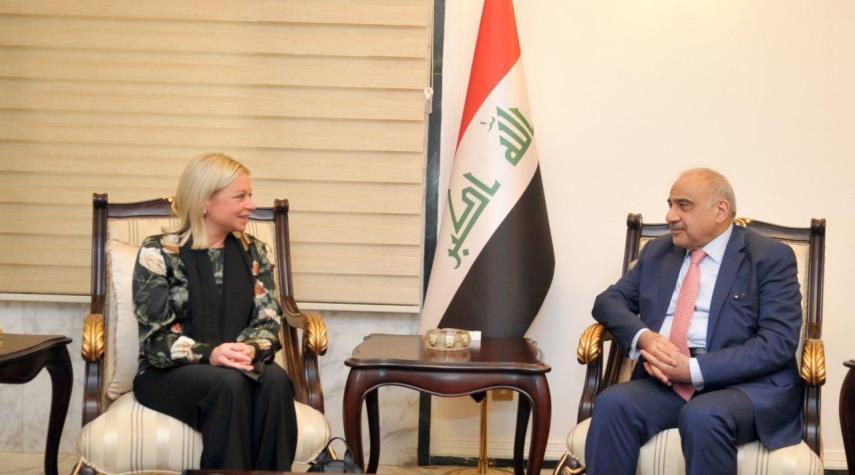 العراق - الكوثر: استقبل رئيس الوزراء العراقي عادل عبدالمهدي؛ اليوم السبت؛ الممثل الخاص للامين العام للأمم المتحدة لمساعدة العراق جينين هينيس بلاسخارت.
