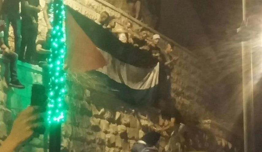 رفع علم فلسطين على باب الأسباط للمسجد الأقصى بعد تراجع الكيان