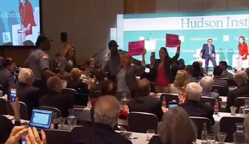 امريكا-الكوثر: ندد محتجون أميركيون بحرب السعودية في اليمن خلال مؤتمر عقد بالعاصمة الأميركية واشنطن، ورفعوا لافتات تدعو إلى وقف الإرهاب السعودي.