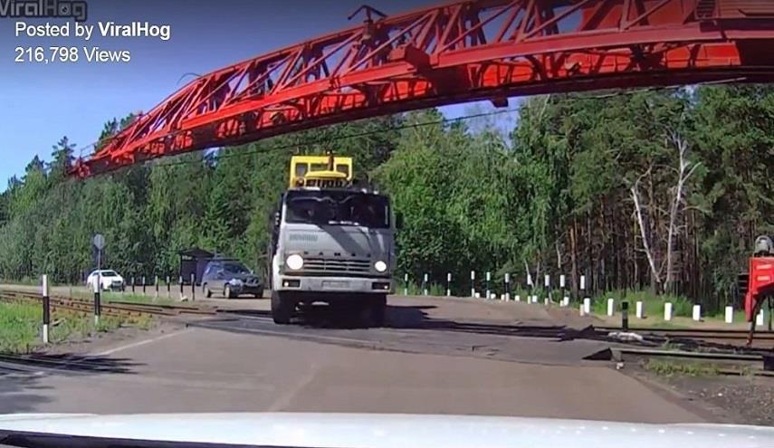 أظهر مقطع مصور نتيجة تسرع سائق شاحنة بمدينة إيركوتسك الروسية. وبحسب الفيديو المتداول فإن سائق الشاحنة توقف عند معبر لمرور السيارات من على قضبان القطارات، غير أن السائق لم ينتظر مرور القطار وتعجل في التحرك فعلقت الشاحنة بالقطار وانقلبت السيارة.