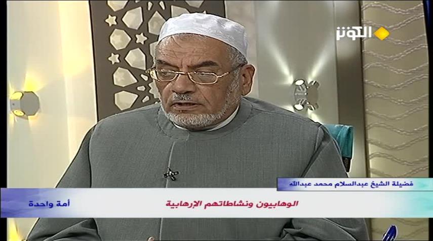 أمة واحدة _ الکوثر: تحدث أستاذ الأزهر الشیخ عبدالسلام محمد في حواره مع برنامج أمة واحدة عن الوهابيين أتباع ابن تيمية وكيف يستخدمون العنف والإرهاب في مساجد المسلمين وحسينياتهم ولا يستخدمونها في أماكن الفساد..