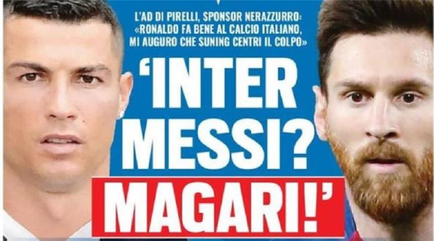 منوعات_الكوثر: يحلم نادي إنتر ميلان الإيطالي بعودة منافسة الثنائي ليونيل ميسي أمام غريمه كريستيانو رونالدو مجدداً ولكن في الكالتشيو الإيطالي بالمواسم المقبلة.