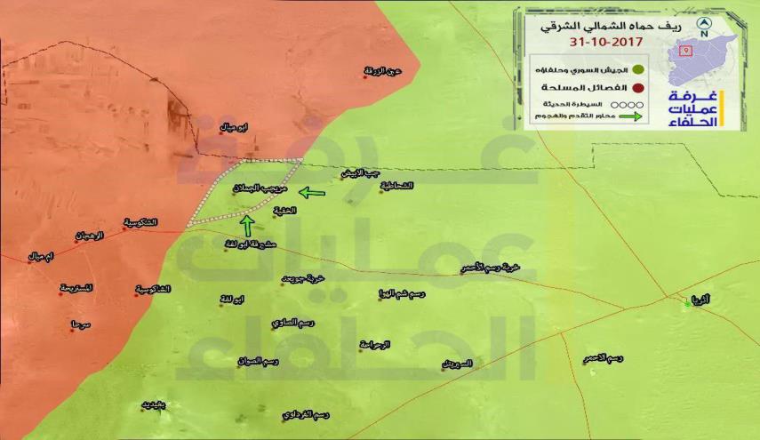 سوريا _ الكوثر: حرّر الجيش السوري وحلفاؤه قرى وبلدات عطشان والحمدانية والسلومية وأبو عمر والناصرية في ريف حماة الشمالي الشرقي الملاصق لريف إدلب الجنوبي الشرقي، وحرروا أيضا تلال الزعتر ومرق وجدوعة، وذلك بعد معارك عنيفة مع إرهابيي جبهة النصرة.