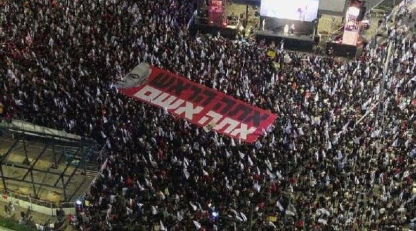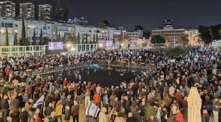 تجمع آلاف المستوطنين الاسرائيليين وسط تل أبيب مساء امس السبت في مظاهرات واسعة تطالب بإجراء انتخابات مبكرة وإسقاط حكومة رئيس وزراء الاحتلال بنيامين نتنياهو وإبرام صفقة تبادل الرهائن.