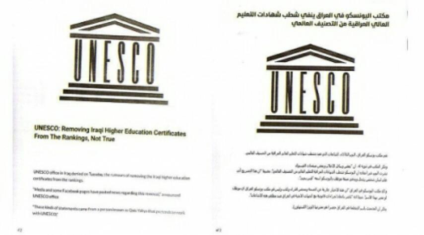 العراق _ الكوثر: نفت وزارة التربية العراقية الأخبار الكاذبة التي ادعت شطب الشهادة العراقية من قبل منظمة اليونسكو ، مؤكدةً قوة ومكانة الشهادة العراقية عالمياً .