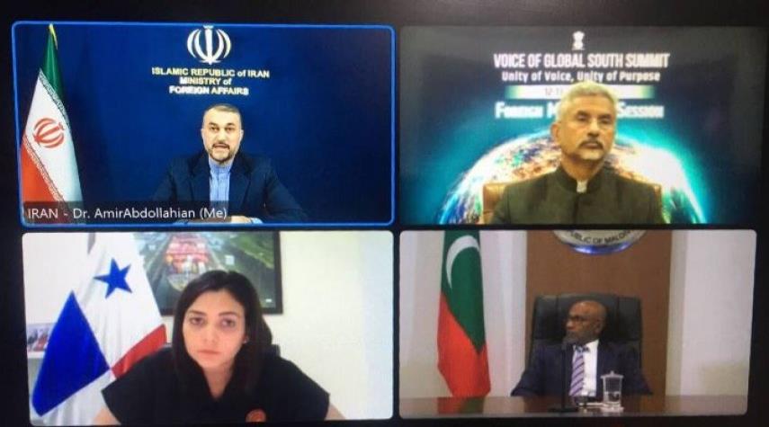 شارك حسين امير عبداللهيان مساء الخميس في ندوة "صوت الجنوب" عبر الانترنت، طرح خلالها آراء ووجهات نظر الجمهورية الاسلامية فيما يتعلق بالقضايا العالمية المهمة والدور المؤثر لدول الجنوب على الساحة الدولية.