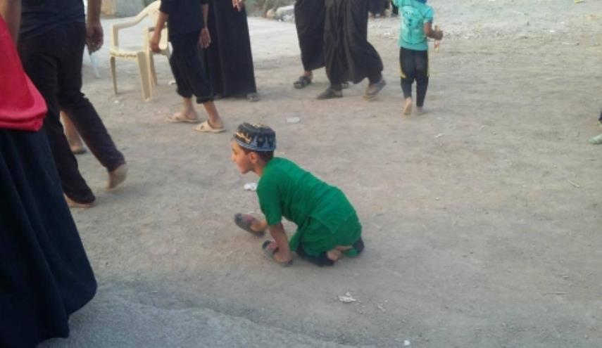 بالصور .. طفل معاق يزحف من البصرة نحو قبلة الاحرار