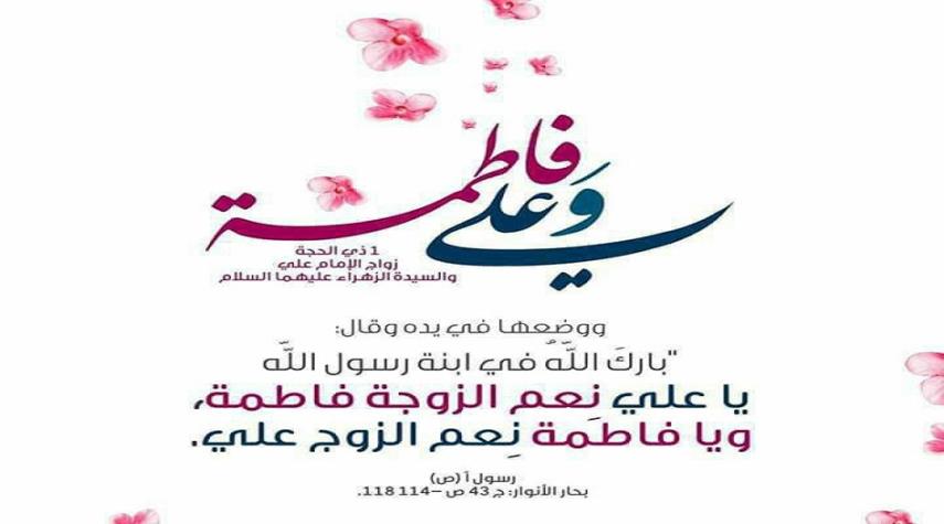 متباركين بذكرى زواج النورين الإمام علي والسيدة فاطمة الزهراء (ع)