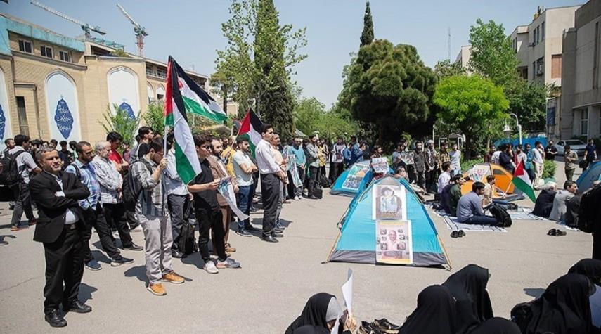 نظم طلاب الجامعة الإيرانية، اليوم الأحد، دعماً للانتفاضة الطلابية المناهضة للصهيونية في أمريكا والدول الأوروبية.