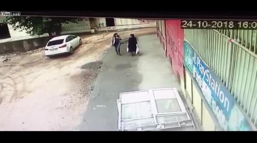 بالفيديو... الأرض تبتلع امرأتين بشكل مروع
