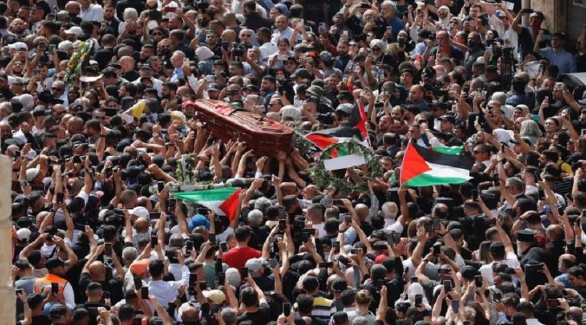 شاهد... عشرات الألاف يشيعون جثمان الشهيدة شيرين أبو عاقلة في القدس المحتلة