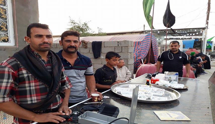 موكب أحباب الله يقدم خدماته لزوار أبا عبدلله الحسين طريق النجف _كربلاء