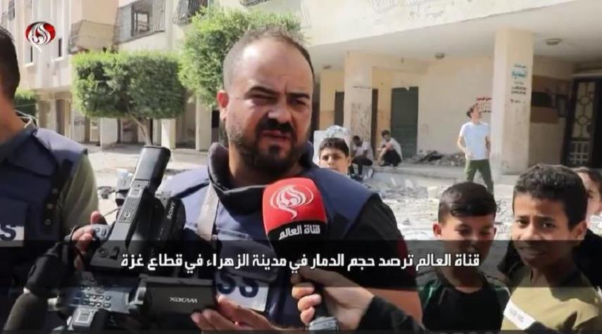 بالفيديو.. استهداف عائلة مصور قناة العالم وصدمته بتدمير منزله