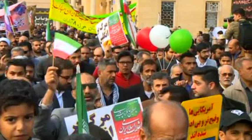 هذا وأحيت مدينة ابادان جنوب غرب إيران ذكرى إنتصار الثورة الإسلامية بمسيرات حاشدة.
