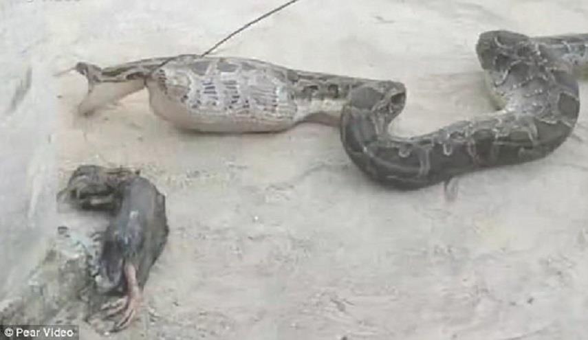 الصين - الكوثر أخرج ثعبان جشع بطة ودجاجة كاملتين من فمه بعد أن ابتلعهما.
