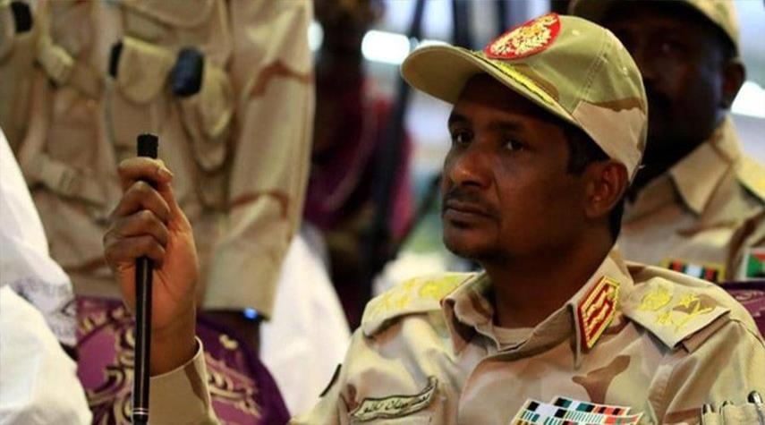 اليمن _ الكوثر: عاد عشرة آلاف عسكري سوداني في اليمن إلى بلدهم، بحسب ما أعلن نائب رئيس المجلس في السودان قائد قوات الدعم السريع محمد حمدان دقلو، الذي ادعى إن “فترة عملهم هناك انتهت” وذلك عقب مشاركتهم لسنوات إلى جانب تحالف العدوان السعودي والإماراتي في قتل الشعب اليمني.