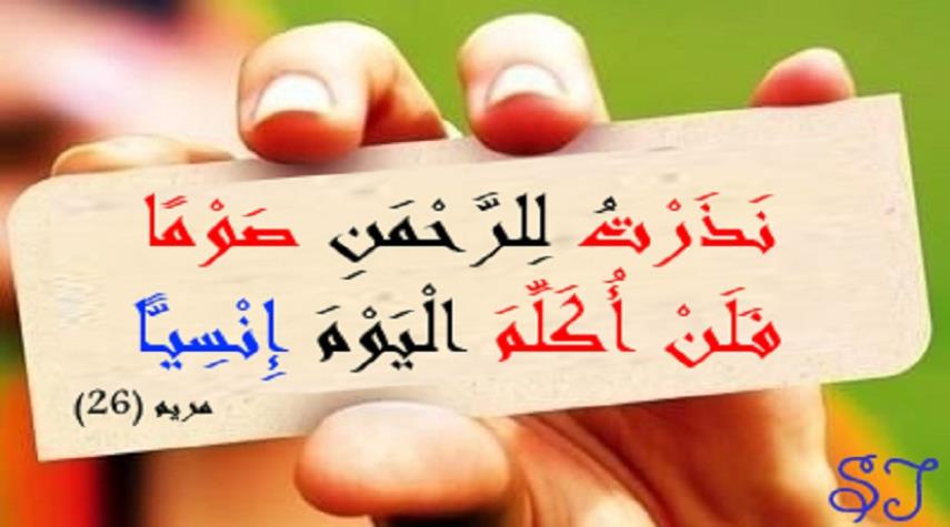(..فإما ترين من البشر أحدا فقولي إني نذرت للرحمن صوما فلن أكلم اليوم إنسيا) (سورة مريم، آية 26).