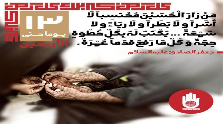 قال الإمام الصادق من زار الحسين محتسبا لا أسرا ولا بطرا ولا رياء ولا سمعة يكتب له بكل خطوة حجة وكل ما رفع قدم عمرة
