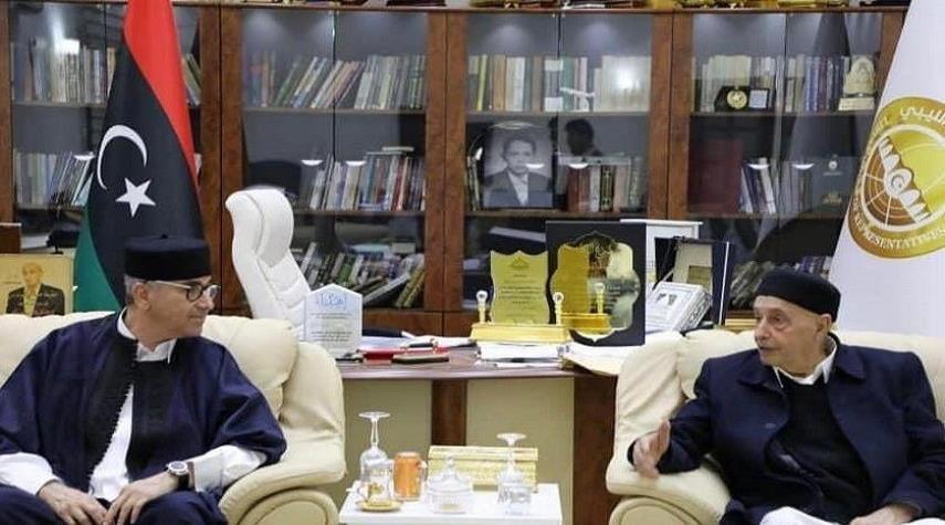 ليبيا_الكوثر: اجتمع رئيس مجلس النواب الليبي عقيلة صالح مع رئيس الحكومة الجديدة والمكلفة من مجلس النواب، فتحي باشاغا، رفقة عدد من الوزراء.
