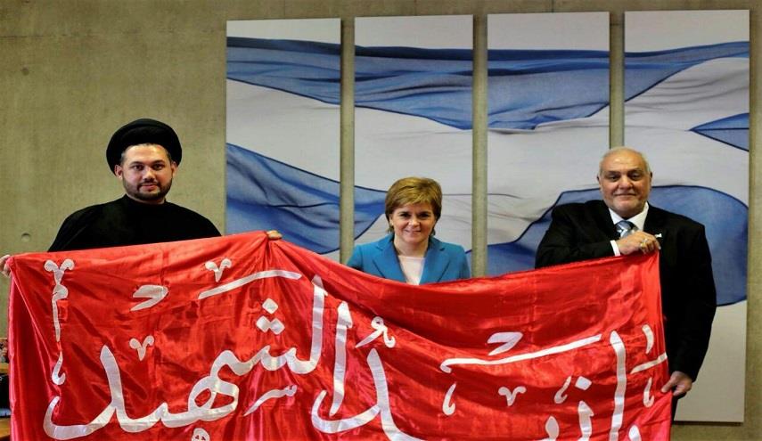 رئيسة وزراء اسكتلندا تطلب راية الامام الحسين (ع).. وتستمع الى قصة استشهاده