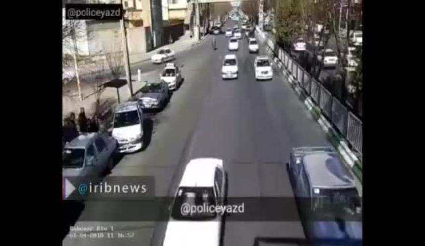 شاهد.. عشر سيارات تصطدم ببعضها بحادث سير في مدينة يزد وسط ايران!