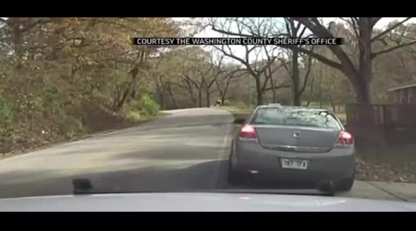شاهد بالفيديو... تبادل إطلاق نار "درامي" بين شرطي وسائق مسرع!