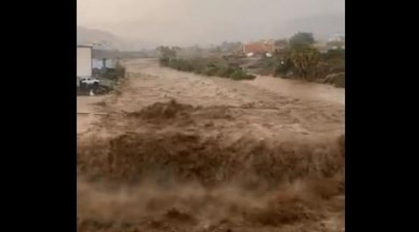 السعودية_الكوثر: انتشر في مواقع التواصل الاجتماعي مقطع فيديو يوثق سيلا ضخما وهو يغمر جسر وادي الفرشة في تهامة قحطان بمنطقة عسير بالسعودية.