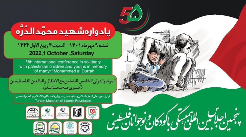 ايران_الكوثر: نقلت قناة الكوثر الفضائية عن وكالة القدس للانباء أن المؤتمر الدولي الخامس للتضامن مع الاطفال الفلسطينيين سيبدا اعماله يوم غد الجمعة الموافق 30\9\2022 تزامنا مع ذكرى استشهاد الطفل الفلسطيني "محمد الدرة" في (30\9\2000) على ايدي جلاوزة الكيان الصهيوني المحتل ويستمر أعمال المؤتمر ليوم السبت.