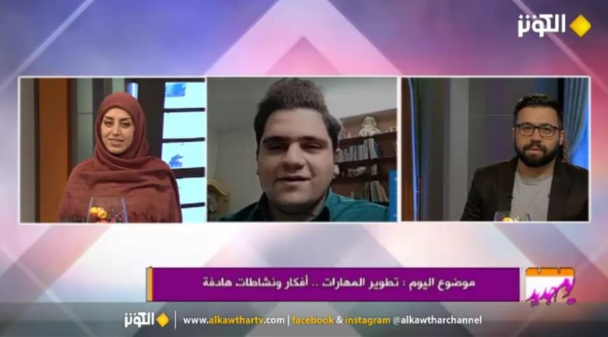 خاص الكوثر: برنامج يوم جديد يتناول بالدراسة أهم الأحداث الاجتماعية والفكرية والثقافية، حيث تطرق البرنامج في هذه الحلقة الى موضوع : " تطوير المهارات، أفكار ونشاطات هادفة " في حوار مع الاستاذ " سجاد المعلم الأكبري " اعلامي إجتماعي من قم المقدسة.