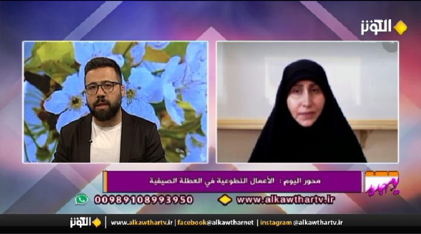 خاص الكوثر_يوم جديد: تحدثنا في برنامج يوم جديد حول محور موضوع الأسبوع ،(العطلة الصيفية وكيفية إستغلالها) تحت عنوان: "الاعمال التطوعية في العطلة الصيفية" مع الاستاذة " نعمت ابو زيد" باحثة في الشؤون الاجتماعية من بيروت.
