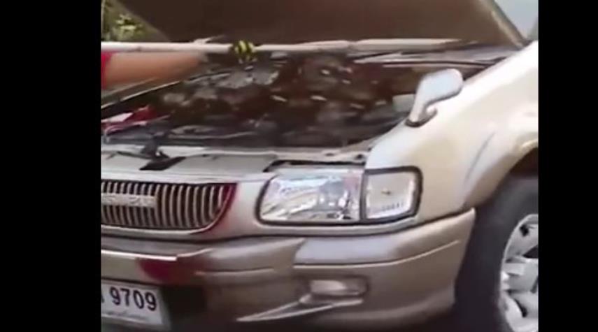 بالفيديو.. سائق يعثر على شيء مخيف داخل محرك سيارته!