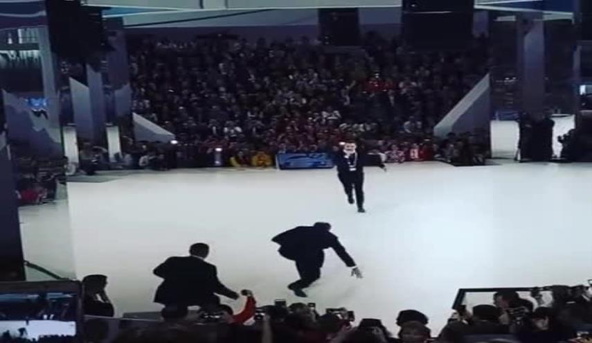 شاهد... لافروف يسقط أرضا أمام الجمهور!
