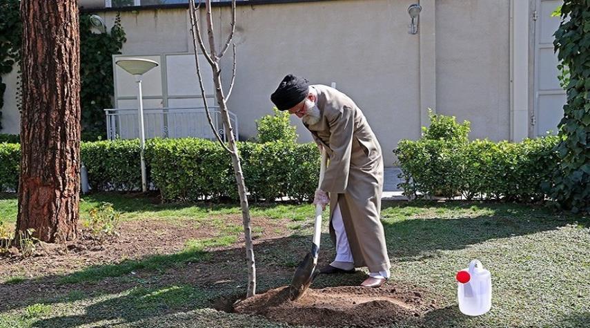 شاهد بالصور : الإمام الخامنئي يغرس شتلتين بمناسبة يوم الشجرة