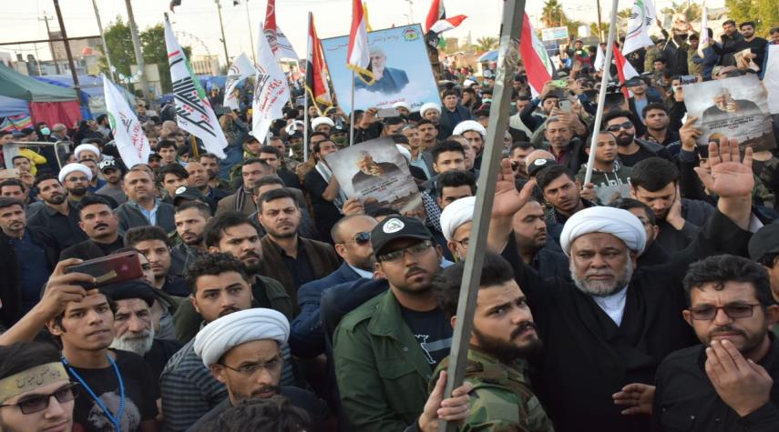 العراق_الكوثر: إنطلاق تشييع رمزي لجثماني نائب رئيس هيئة الحشد الشعبي أبو مهدي المهندس وقائد فيلق القدس الإيراني قاسم سليماني من مجسر التربية باتجاه شارع كازينو لبنان وسط البصرة فيما ردد المشيعون عبارات وهتافات تستنكر استهداف الشهداء بغارة من طائرة مسيرة قرب مطار بغداد ومطالبات لمجلس النواب بالتصويت على إخراج القوات الأمريكية من العراق.