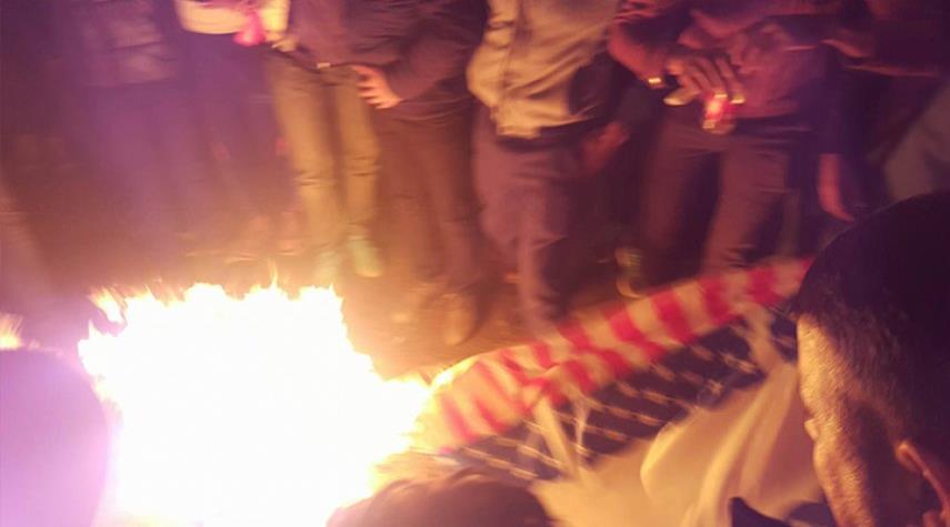 شاهد بالفيديو ..احراق العلمين الاميركي والصهيوني في ساحة التحرير ببغداد