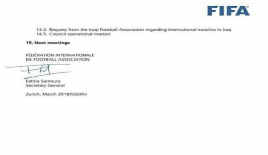 الفيفا يدرج رسمياً فقرة رفع الحظر عن الملاعب العراقية