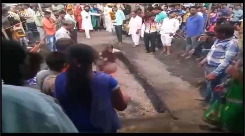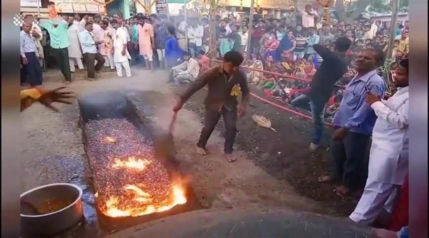 شاهد بالفيديو.. امرأة تسقط في الفحم المشتعل خلال مهرجان في الهند