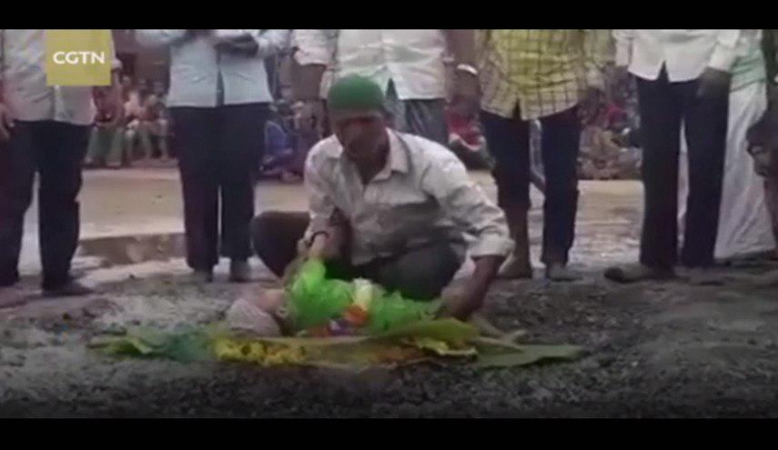 منوعات_الكوثر: أثار رجل هندي حالة من الغضب والأستنكار بين متابعي ومستخدمي مواقع التواصل الأجتماعي عقب نشر مقطع فيديو له وهو يضع طفله البالغ من العمر 18 شهرا على الفحم الساخن خلال حفل ديني في ولاية كارناتاكا جنوب الهند.